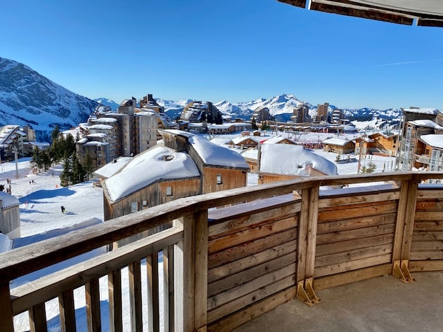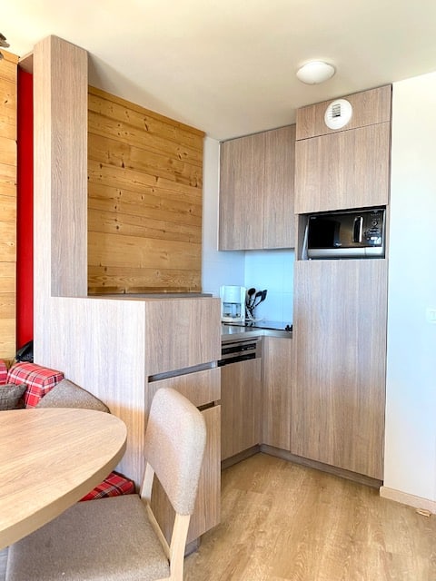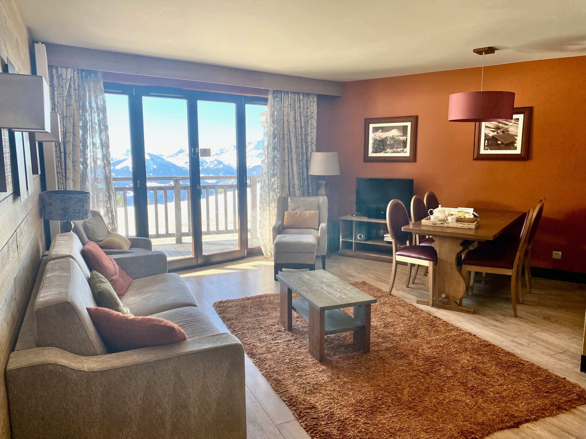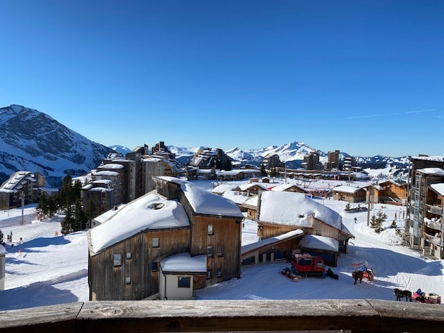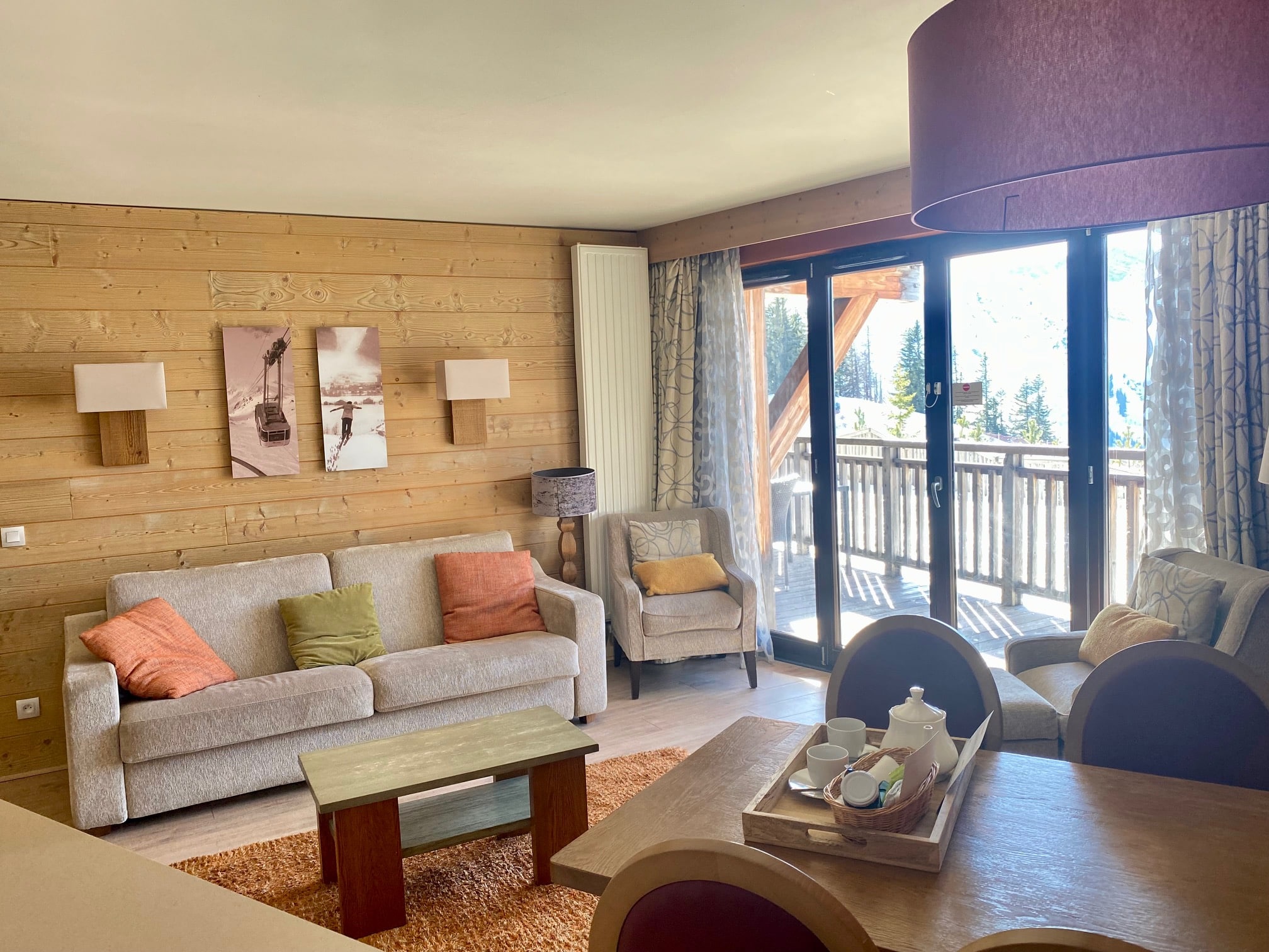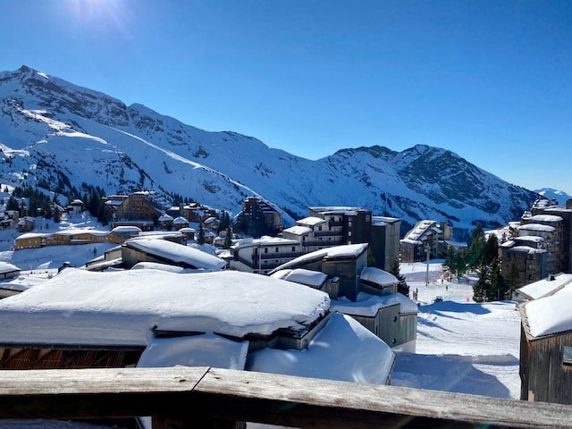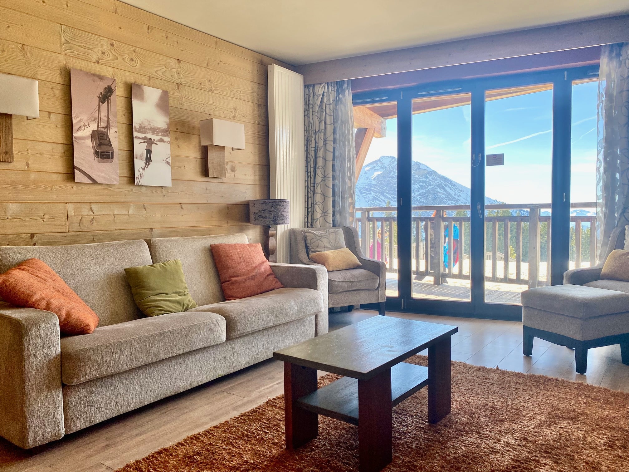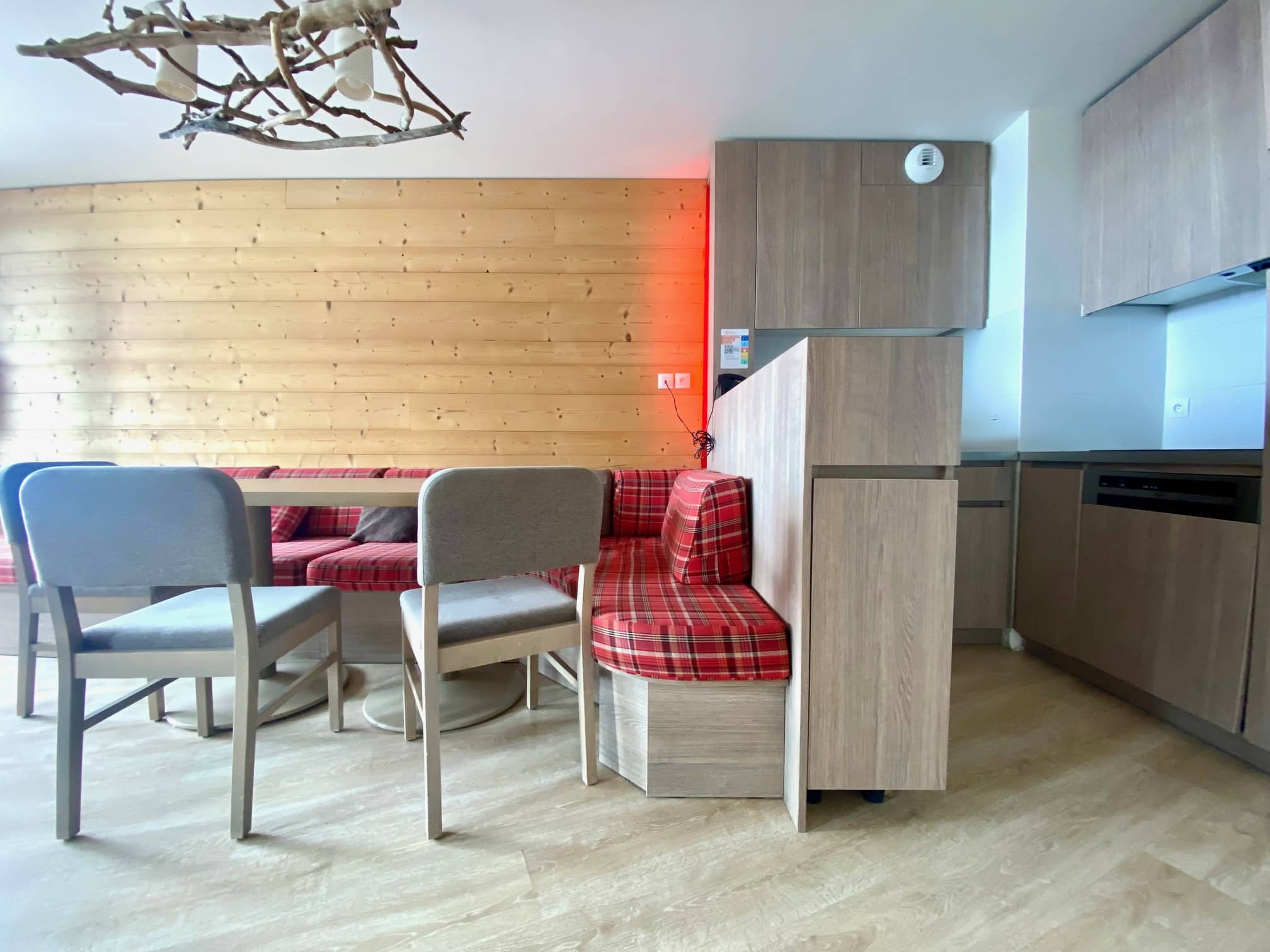 Résidence L’Electra . 2 pièces situé au dernier étage , vous profitez d’une vue panoramique sur la station et d’une belle luminosité grâce à sa hauteur sous plafond . appartement très bien agencé et idéal pour des vacances à la montagne : entrée avec chambre , une salle de bains et toilettes séparés , puis la pièce de vie avec cuisine équipée et coin repas et un séjour prolongé d’une grande terrasse sans vis à vis .