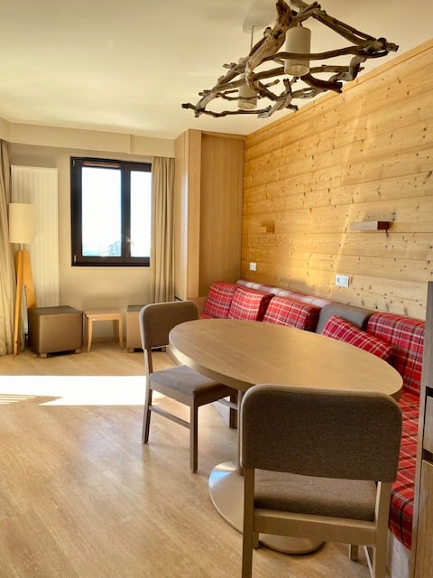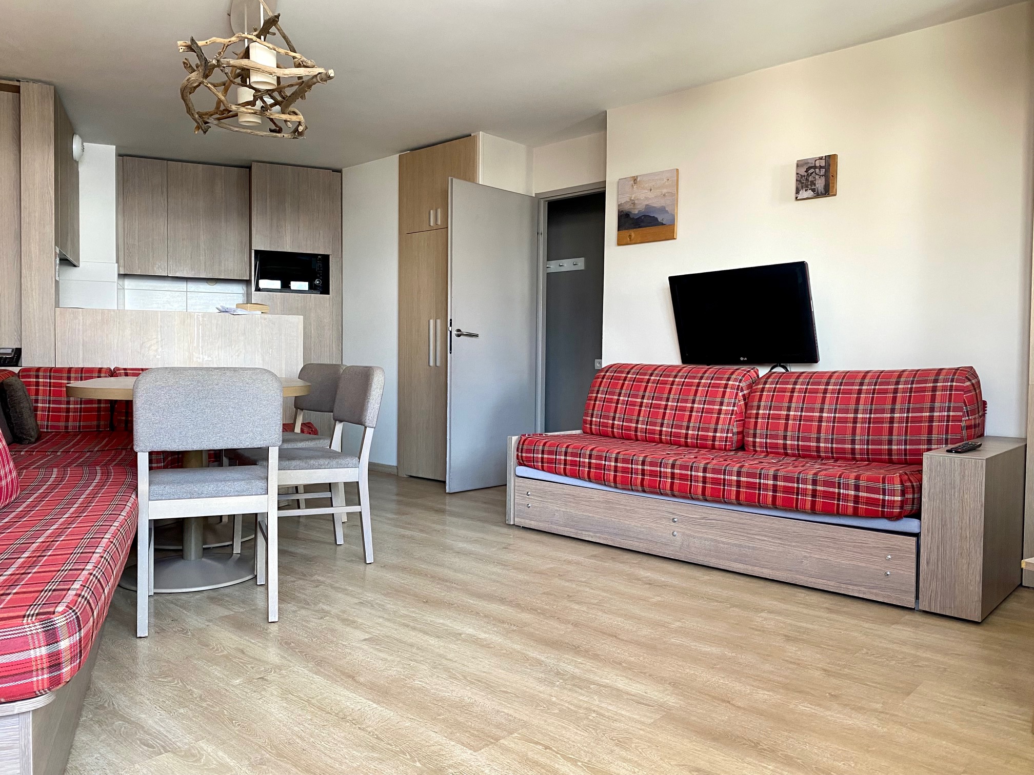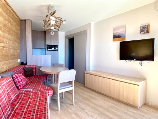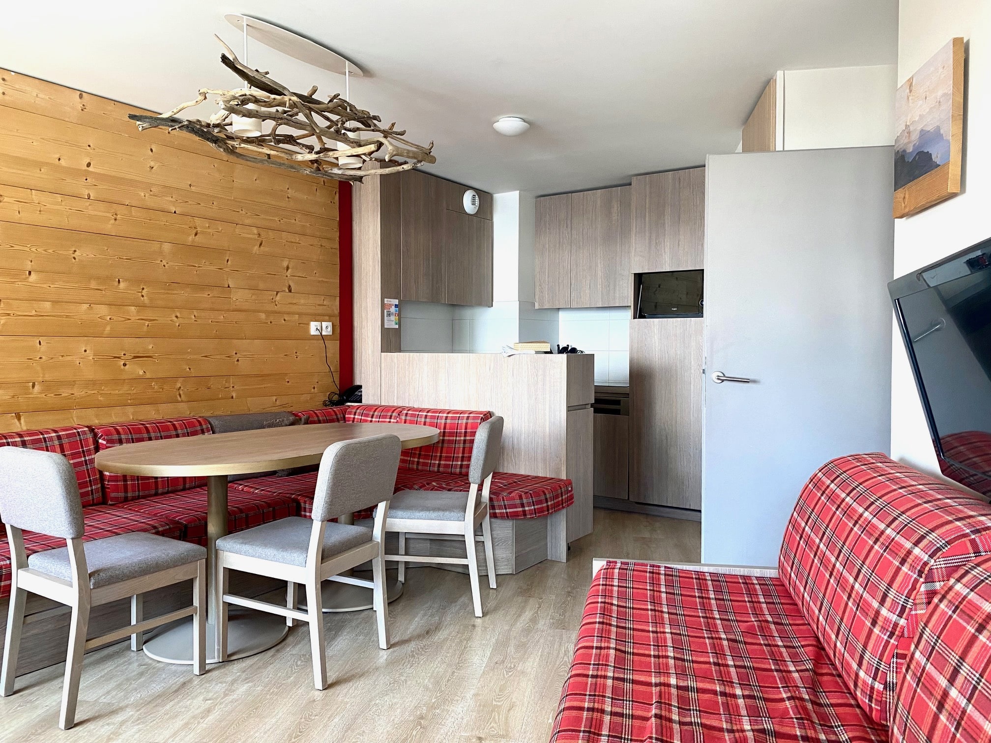 Résidence l’Altair Appartement très confortable et bien agencé : chambre avec 3 couchages orienté côté station ( assez rare dans la résidence ) , une SDB et toilettes séparés , et un grand séjour très lumineux prolongé d’une terrasse exposé sud ouest .