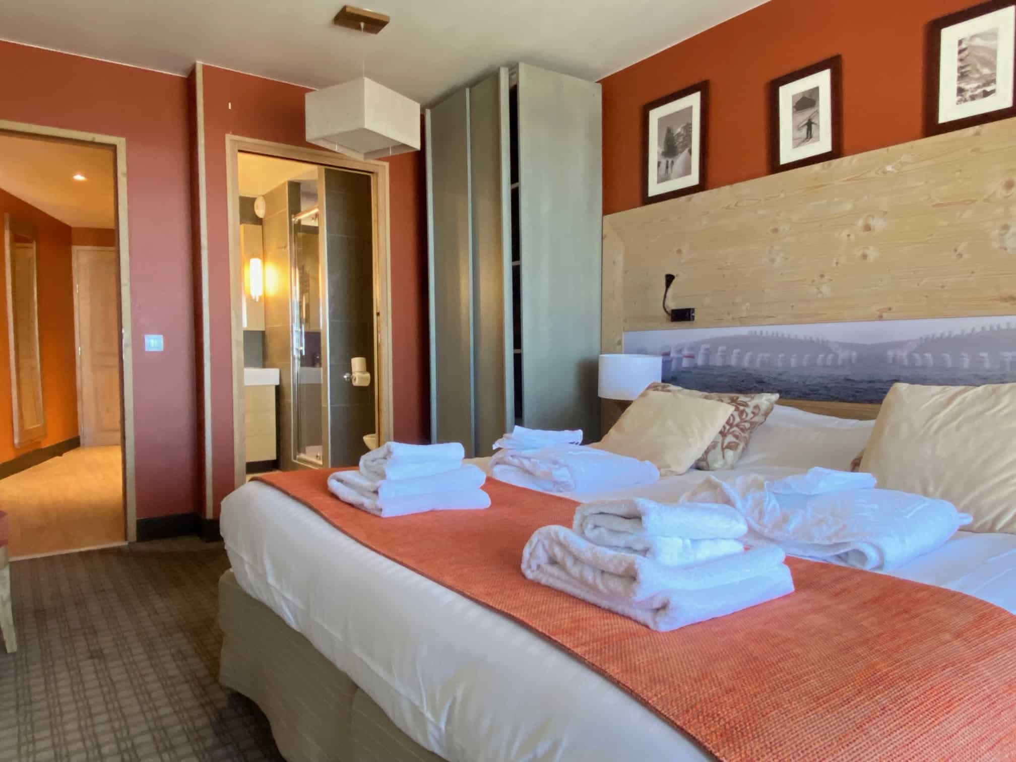 Vous profitez des prestations de la résidence : piscine privée , salle de sport , spa . magasins de ski et restaurants . départ skis aux pieds